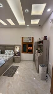 Throughout the house, the design emphasizes natural materials like wood, stone, and linen, paired with matte black or brushed brass metals for a sleek, modern look. Eco-friendly finishes, such as sustainable paints and LED lighting, are incorporated wherever possible, ensuring the design is both stylish and environmentally conscious. The minimalist aesthetic is softened with cozy textiles, plants, and curated artwork, making the space feel inviting and personal while maintaining a contemporary, uncluttered feel.