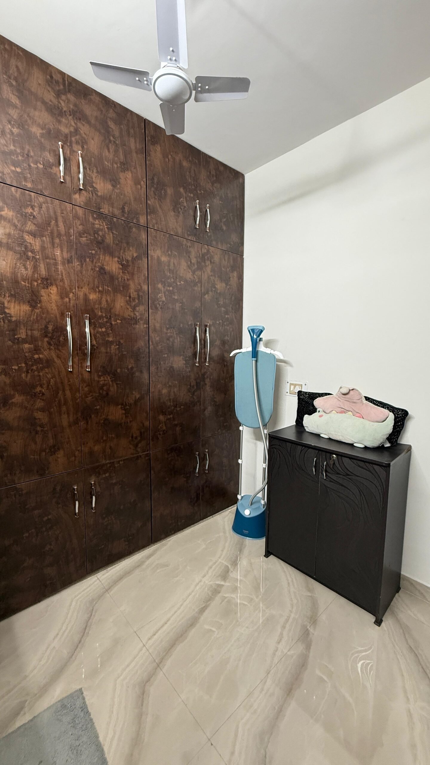 For the multipurpose nook or office space, a wall-mounted floating desk in light wood or matte white serves as a functional workspace, with open shelving above to store books or office essentials. An ergonomic chair in complementary fabric or leatherette ensures comfort during work or study, and a sliding barn-style panel or light curtain offers privacy when needed. This space is designed to blend seamlessly into the overall home while providing a quiet area for work or relaxation without taking up too much of the limited square footage.